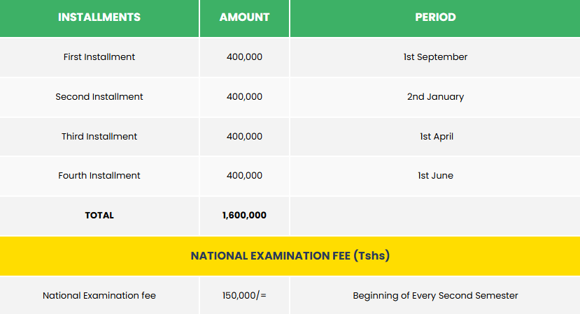 Training Fees can be paid wholly at the beginning of the year, half-yearly at the beginning of each semester or in four installments as follows: